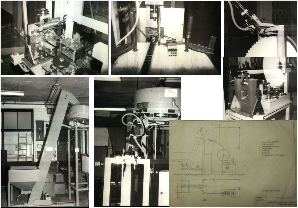 Zweck dieser Anlage ist es, sogenannte "Röllchenbahnen" herzustellen. Die Röllchen werden als Schüttgut in den Trichter der Anlage gefüllt, über einen Steilförderer in einen höher liegenden Sortierer befördert,