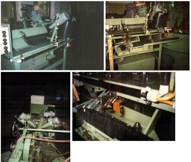 in eine Trapezwelle eingeführt. Die angetriebene Trapezwelle führt die zu entgratenden Messer an zwei Bearbeitungsstationen mit Drahtbürsten vorbei. Im Anschluss werden die entgrateten Klingen lagerichtig in einer Führung sortiert